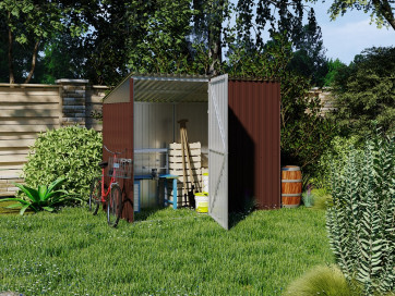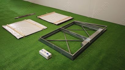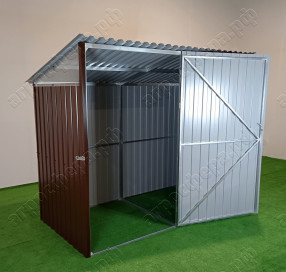 Сборка хозблока осуществляется при помощи болтов и саморезов. Все детали изготавливаются разборными, профлист нарезан на части. Компактно упакован и может перевозиться на багажнике легкового автомобиля.