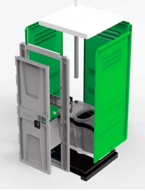 Стандартная комплектация: накопительный бак, сиденье с крышкой, пластиковый поддон, запирающее устройство с индикацией "Свободно-Занято", антивандальное крепление двери, вентиляционная труба, универсальные ушки для навесного замка, держатель для туалетной бумаги, крючок для одежды.